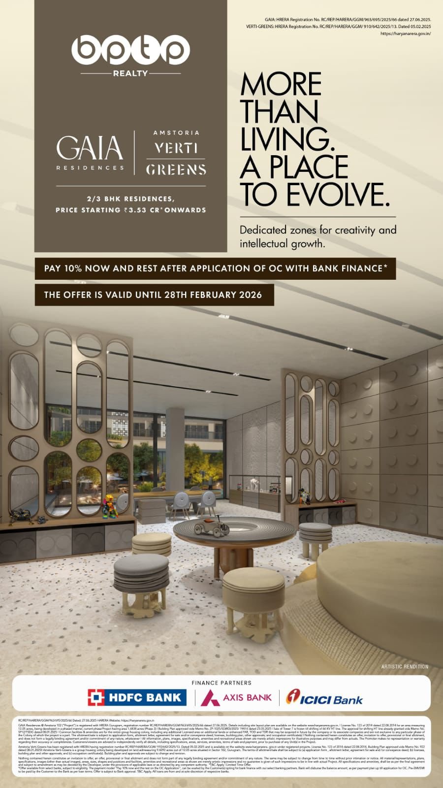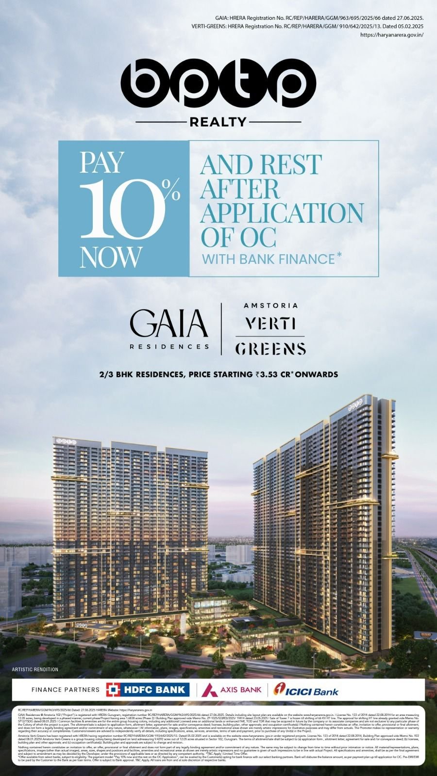 The limited-period payment structure at BPTP GAIA Residences & Amstoria Verti-Greens remains valid only till 28th February 2026.